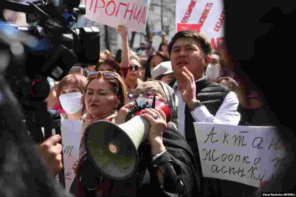 Активисты, блогеры, правозащитники и рядовые жители вышли на акцию протеста к зданию МВД в Бишкеке после похищения и убийства Айзады Канатбековой. Некоторые участники митинга потребовали отставки министра внутренних дел и его заместителей, а также главы ГУВД Бишкека.