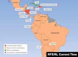 Из 21 страны Латинской Америки аборты легализованы только в трех: на Кубе, в Уругвае и в Пуэрто-Рико. В Доминиканской республике, Сальвадоре, Гаити, Гондурасе и Никарагуа действует полный запрет на добровольное прерывание беременности. По информации Amnesty International, в тюрьмах Сальвадора сидят женщины, приговоренные за провоцирование выкидышей к 30 годам заключения. В большинстве стран региона аборты разрешены только в случае изнасилований, инцеста, нежизнеспособности плода или при угрозе жизни и здоровью женщины.